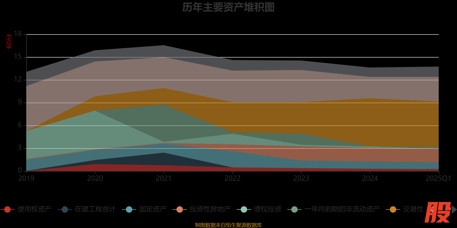 资产重大变化方面,截至2025年一季度末,公司货币资金较上年末增加16.38%,占公司总资产比重上升3.15个百分点;交易性金融资产合计较上年末减少5.67%,占公司总资产比重下降3.04个百分点;一年内到期的非流动资产占公司总资产的1.56%,上年末为0;债权投资较上年末减少100%,占公司总资产比重下降1.56个百分点。